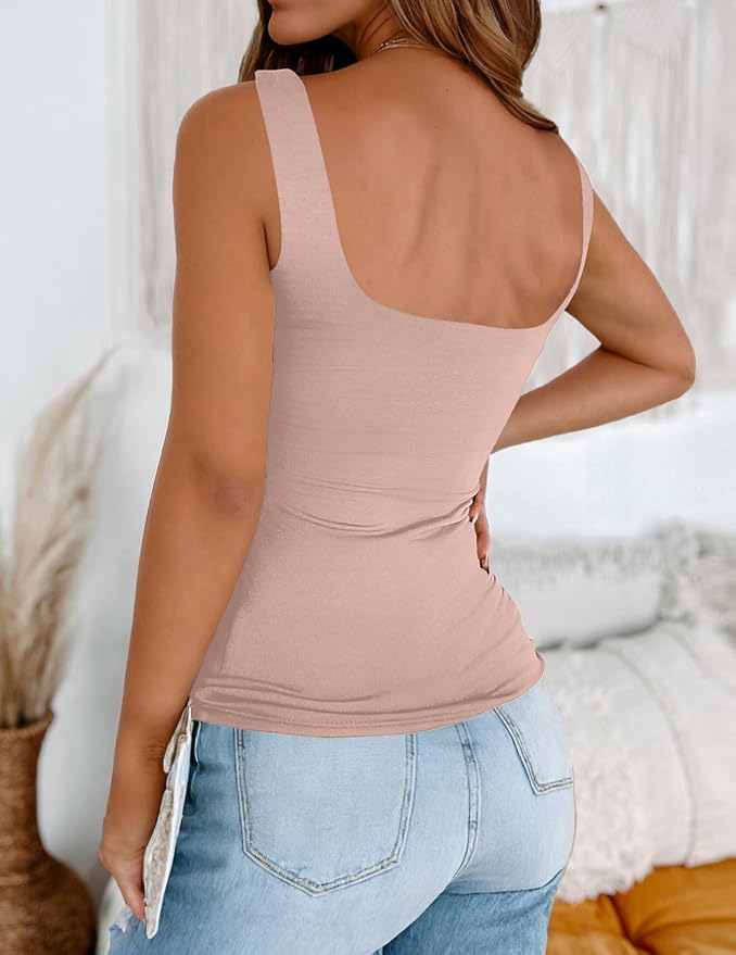 The secret to a high-end look on a budget is fabric thickness. This Square Neck Tank Top is double-lined, ensuring it isn’t see-through and providing a smoothing effect that mimics expensive shapewear.