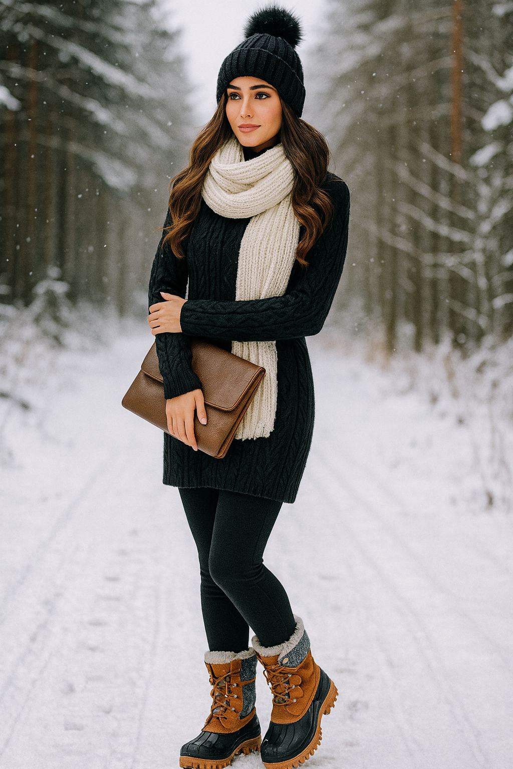 Women’s Winter Sweater Dress with Over-The-Knee Boots – Cozy & Stylish Winter Outfit 2025