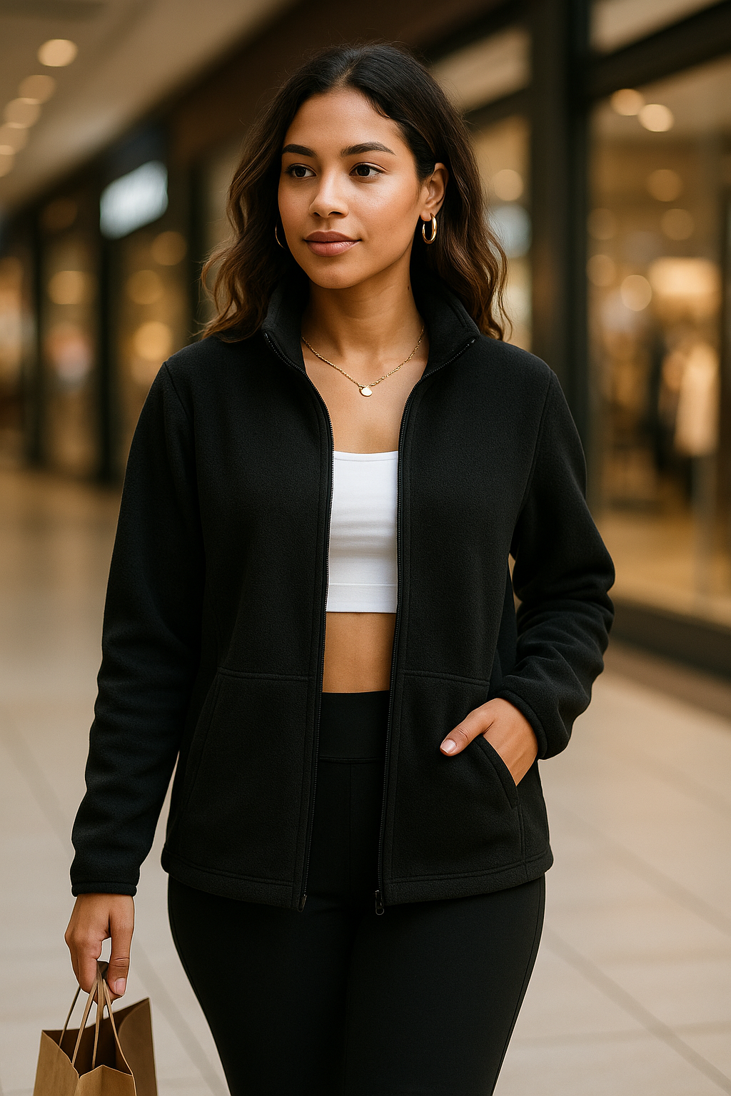 It’s perfect for mild winter days. For freezing temperatures, layer with a hoodie or sweater.